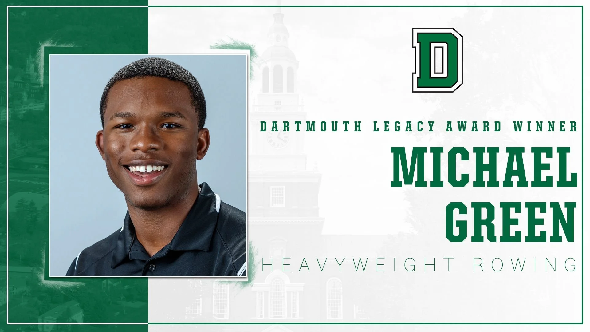 HANOVER, N.H. – Dartmouth heavyweight rower Michael Green was one of 14 graduating seniors to receive the 2021 Dartmouth Legacy Award Wednesday afternoon in a virtual Special Recognition Celebration.